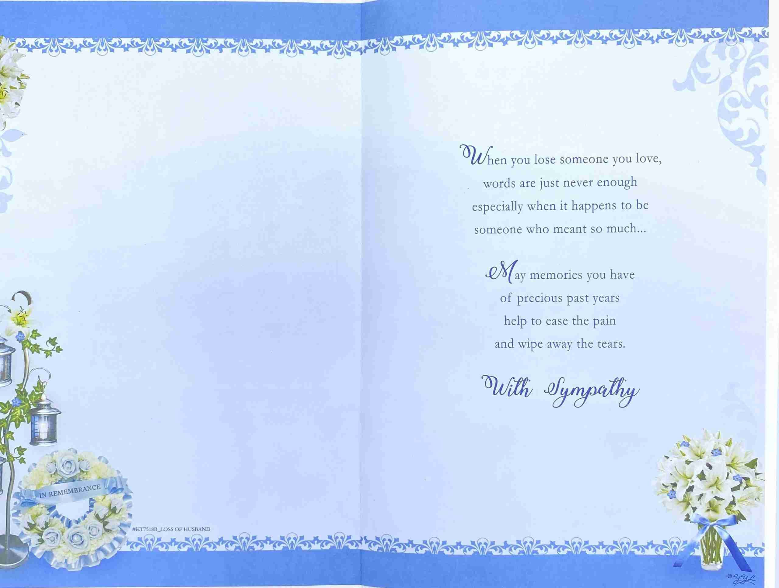 With Deepest Sympathy On The Loss Of Y0ur Husband Card With Keepsake